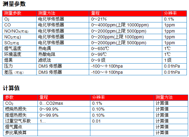 德國(guó)RBR ecom-CN手持式煙氣分析儀測(cè)量參數(shù):